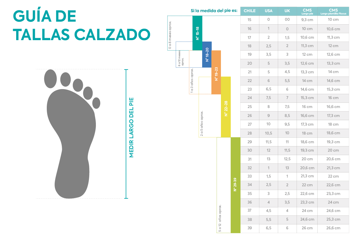 Guía de Calzado: https://www.ficcus.cl/guia-de-tallas-calzado